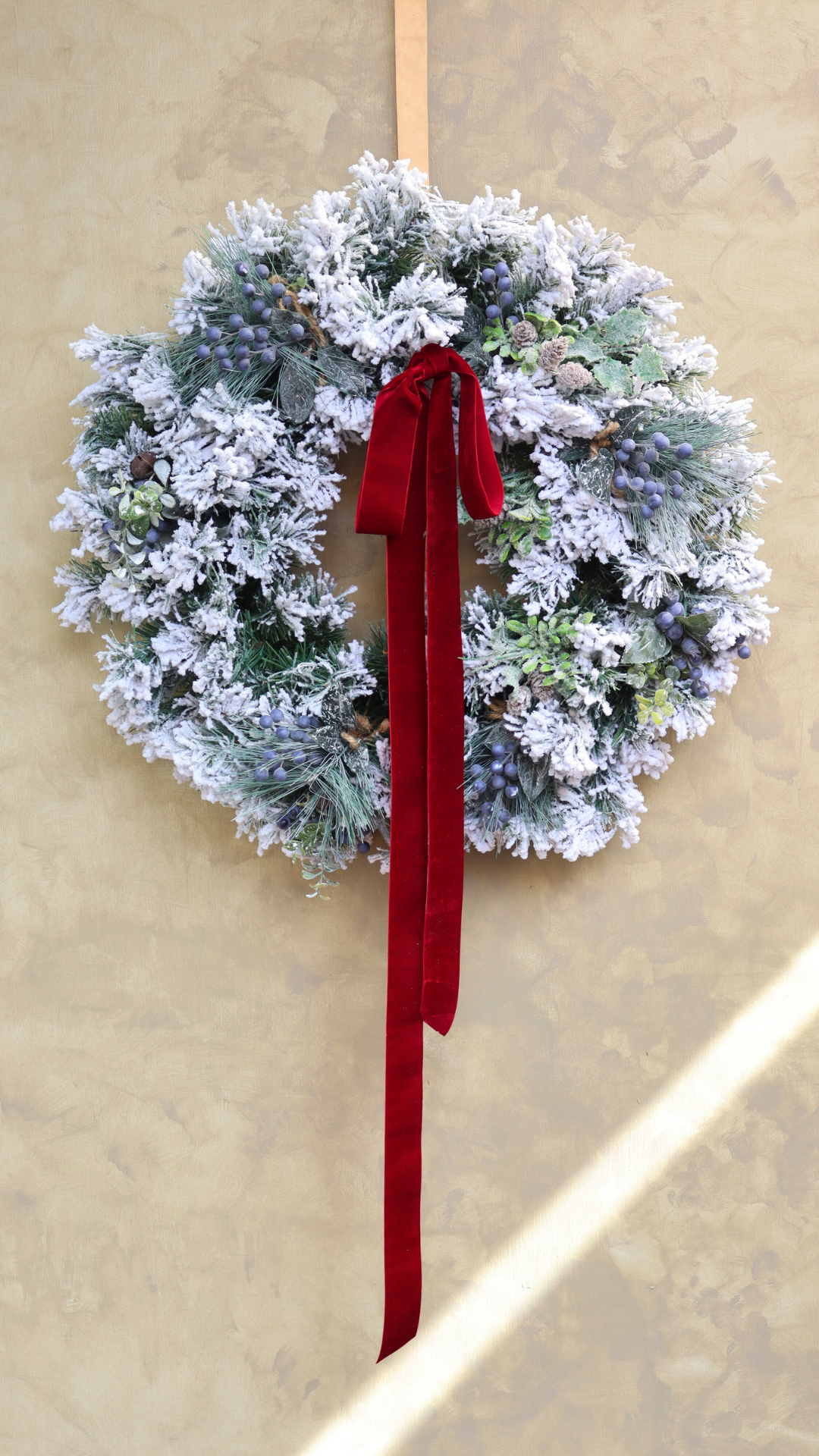 Nuestra Corona Nevada Artificial es una pieza decorativa llena de encanto invernal, perfecta para transformar cualquier espacio con un toque de magia navideña.