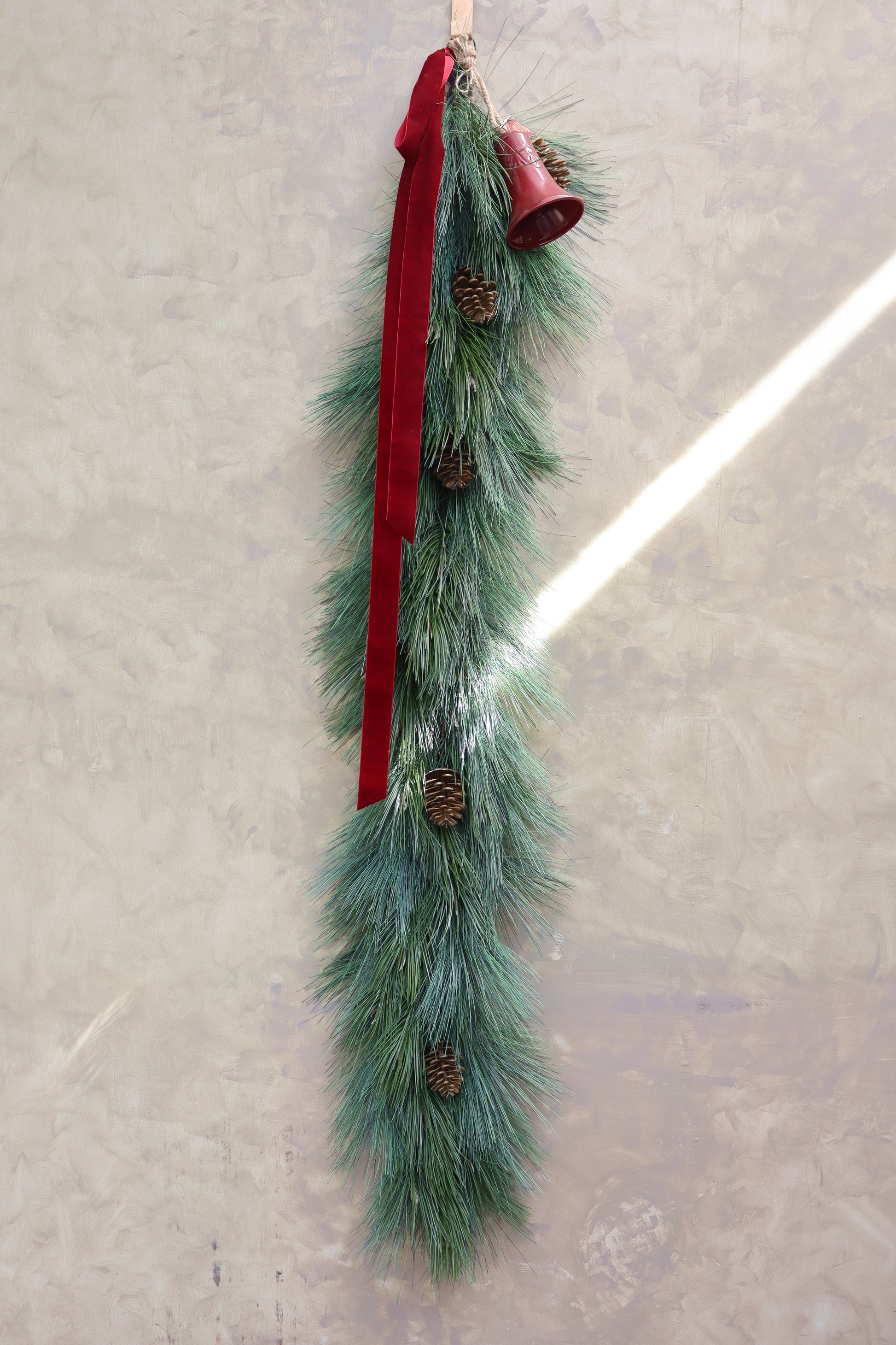 Diseñada con follaje de pino de apariencia natural y detalles decorativos que aportan brillo y textura, esta guirnalda es ideal para colocar en chimeneas, escaleras, marcos o mesas largas.